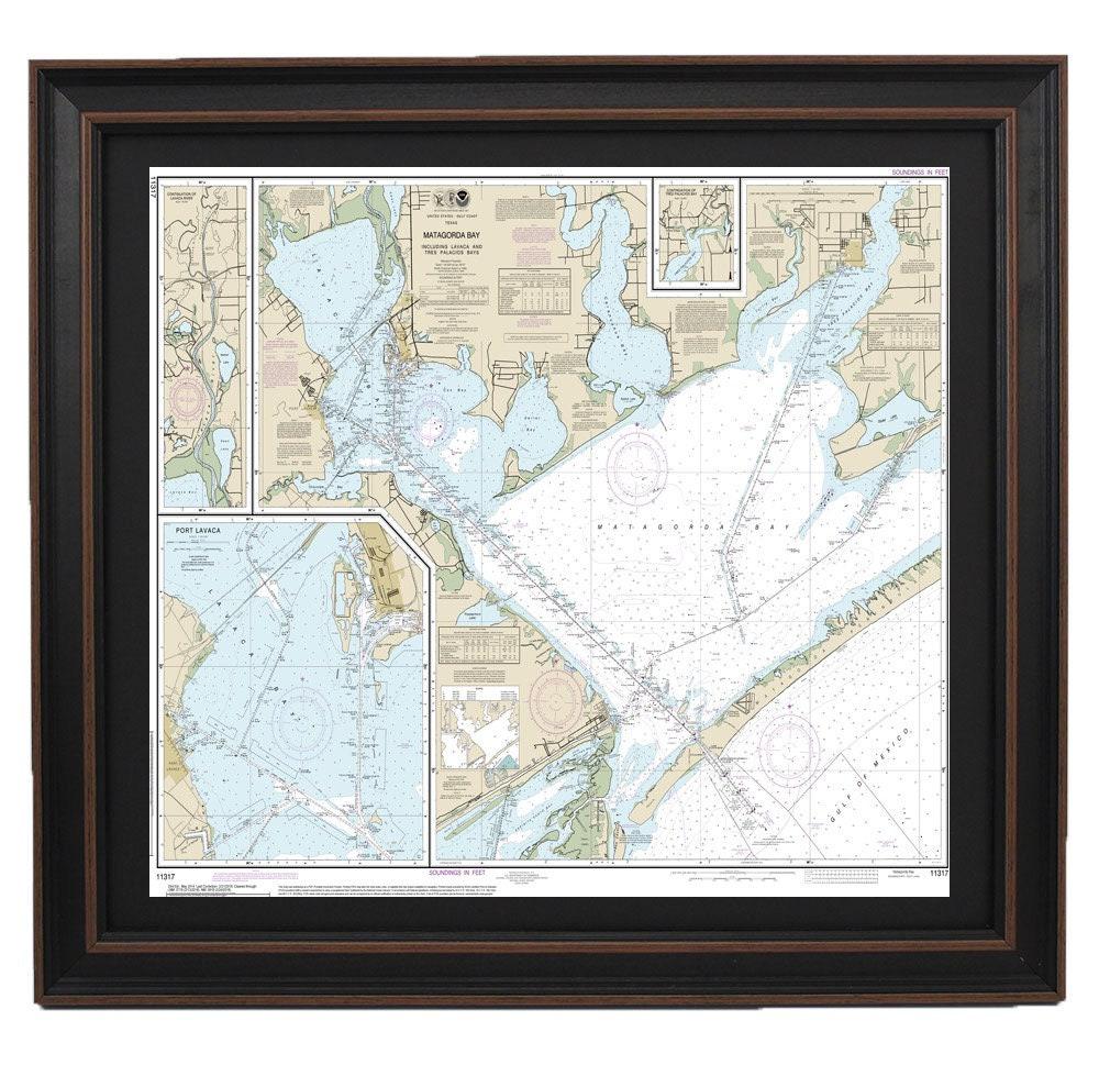 Framed Nautical Chart 11317 - Matagorda Bay. NOAA 11317. Handmade in the USA.