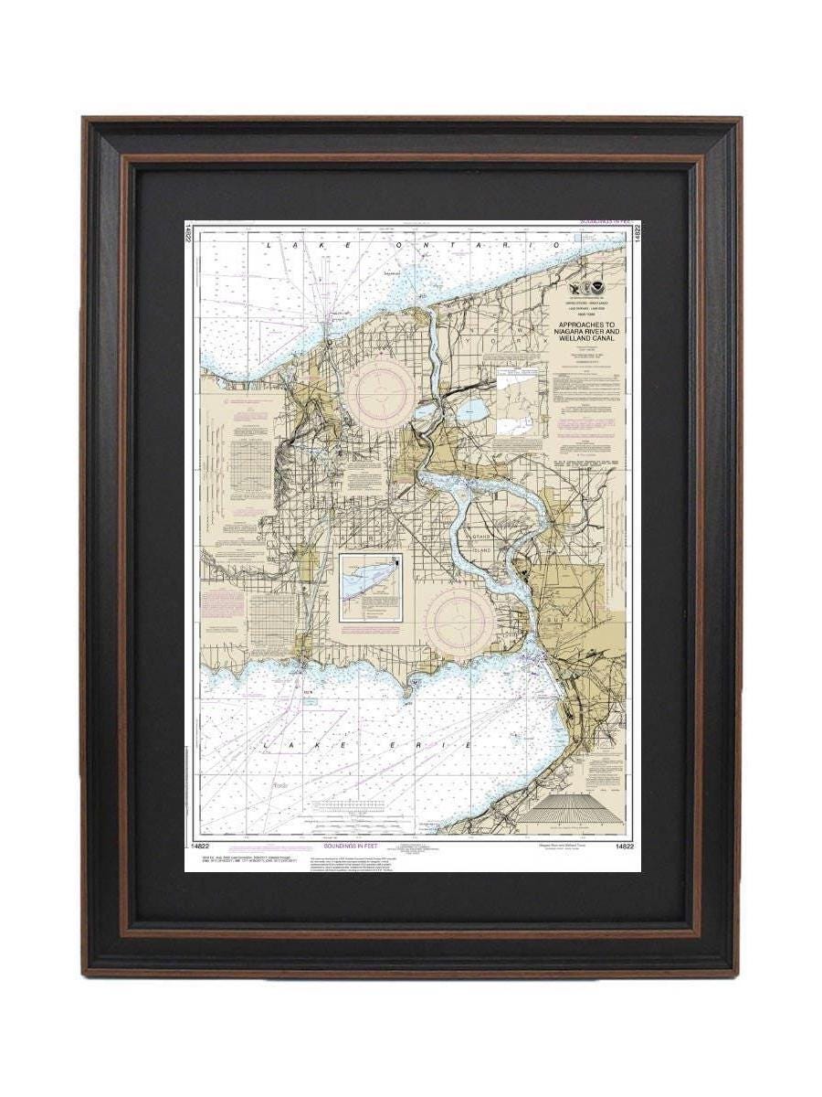 Framed Nautical Chart 14822 - Niagara Falls. Lake Erie to Lake Ontario. NOAA 14822. Handmade in the USA.