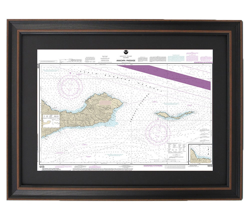 Framed Nautical Chart 18729 - Anacapa Passage. Prisoners Harbor. NOAA 18729. Handmade in the USA.