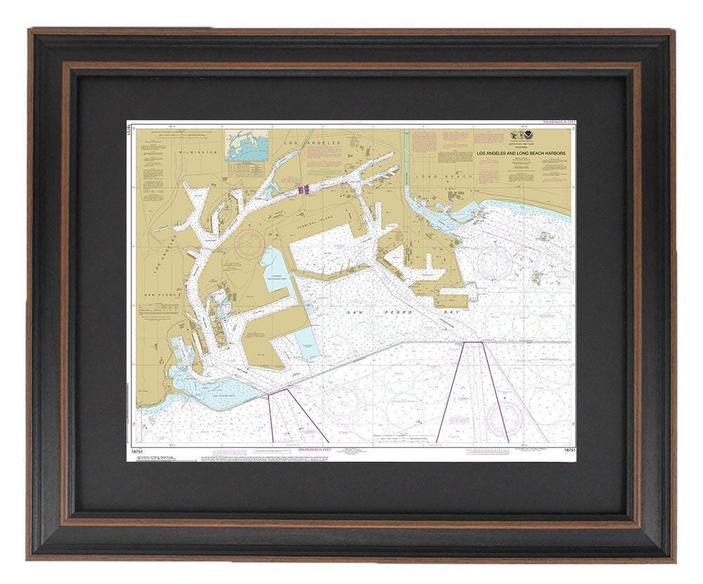 Framed Nautical Chart 18751 - Los Angeles and Long Beach Harbors. NOAA 18751. Handmade in the USA.